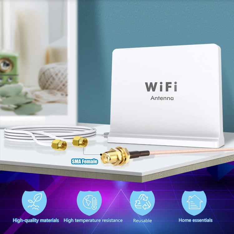 Es compatible con equipos que utilizan Conectores SMA hembra y TS9 macho, comúnmente encontrados en dispositivos de comunicaciones y WiFi.