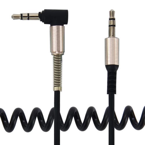 • 1x Cable en Espiral Retráctil Aux de Audio 3 Polos 3,5 mm Macho a Macho 1,5 m (Negro)