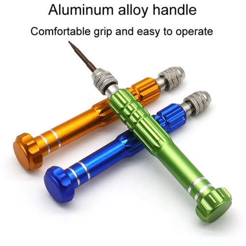 El destornillador de aleación de aluminio 5 en 1 es una herramienta profesional diseñada para la reparación y desmontaje de Teléfonos Móviles y otros dispositivos Digitales. Este modelo combina una broca S2 con un mango fabricado en aleación de aluminio, ofreciendo resistencia y ligereza para un manejo eficiente. Su diseño ergonómico incluye una Tapa Trasera giratoria 360 grados que permite una rotación rápida y precisa con una sola mano, facilitando la extracción de la mayoría de tornillos utilizados en smartphones. La estructura antideslizante en el mango garantiza un agarre cómodo y seguro durante las operaciones Técnicas, siendo ideal para usuarios que reparan por cuenta propia o técnicos especializados.