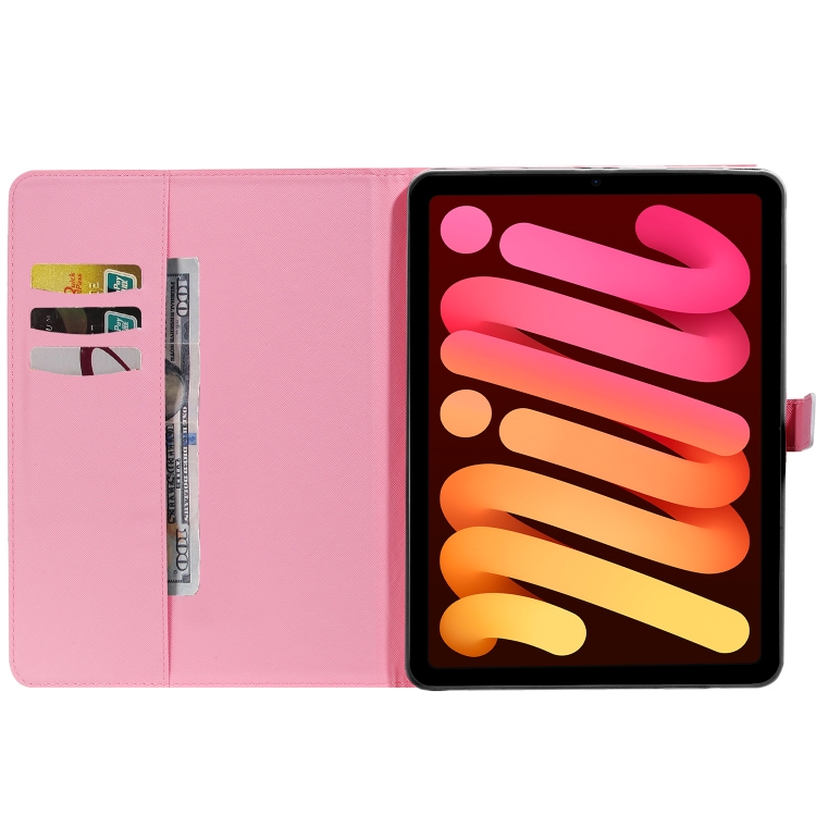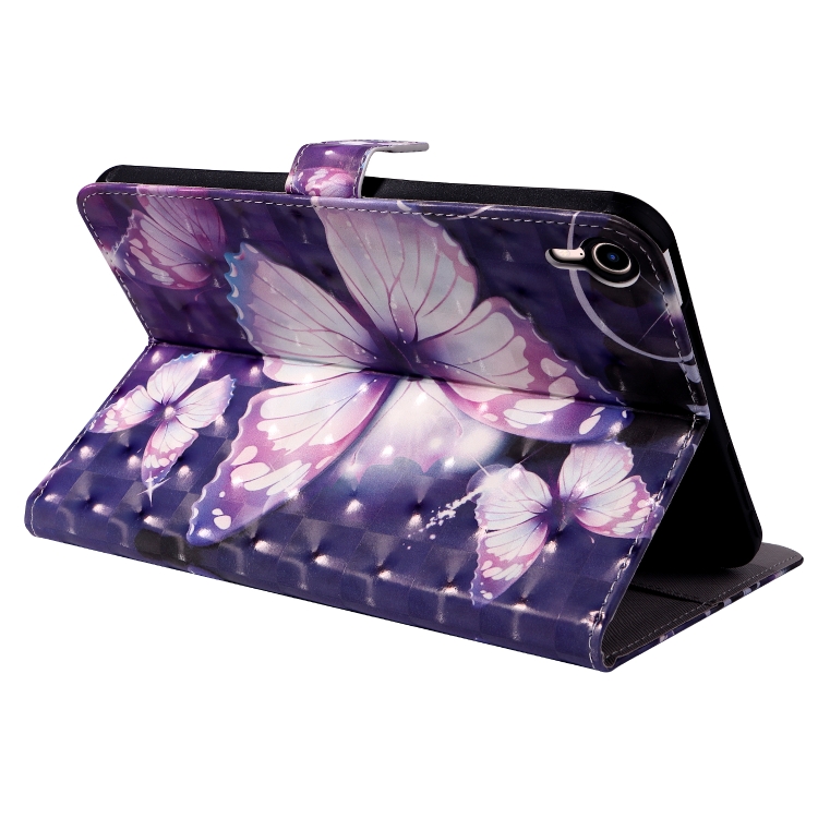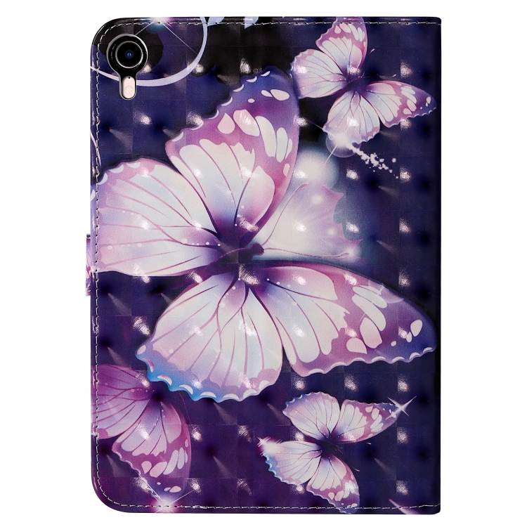 Caja Tableta Cuero iPad Mini 6 Dibujo 3D Horizontal (Mariposa Púrpura)