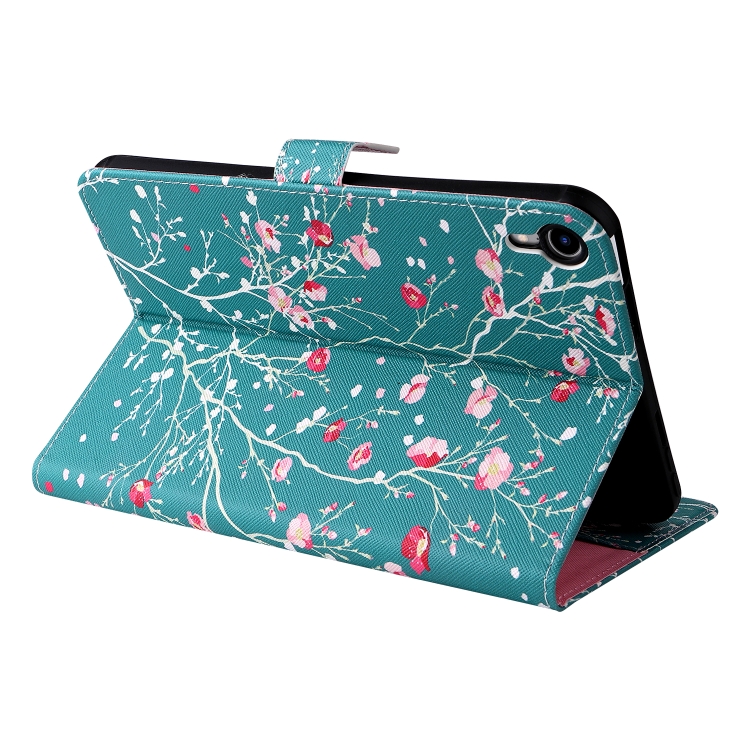 Caja Tableta Cuero Apple iPad Mini 6 Dibujo Colores (Árbol Flor Albaricoque)