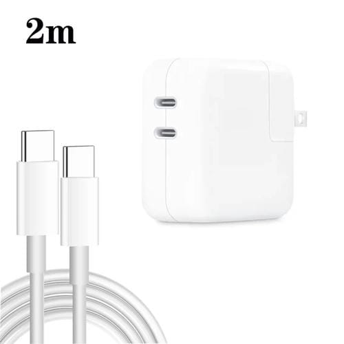 Cargador 35 W PD3.0 USB-C Tipo-C doble puerto con cable Tipo C 2 m (Blanco)