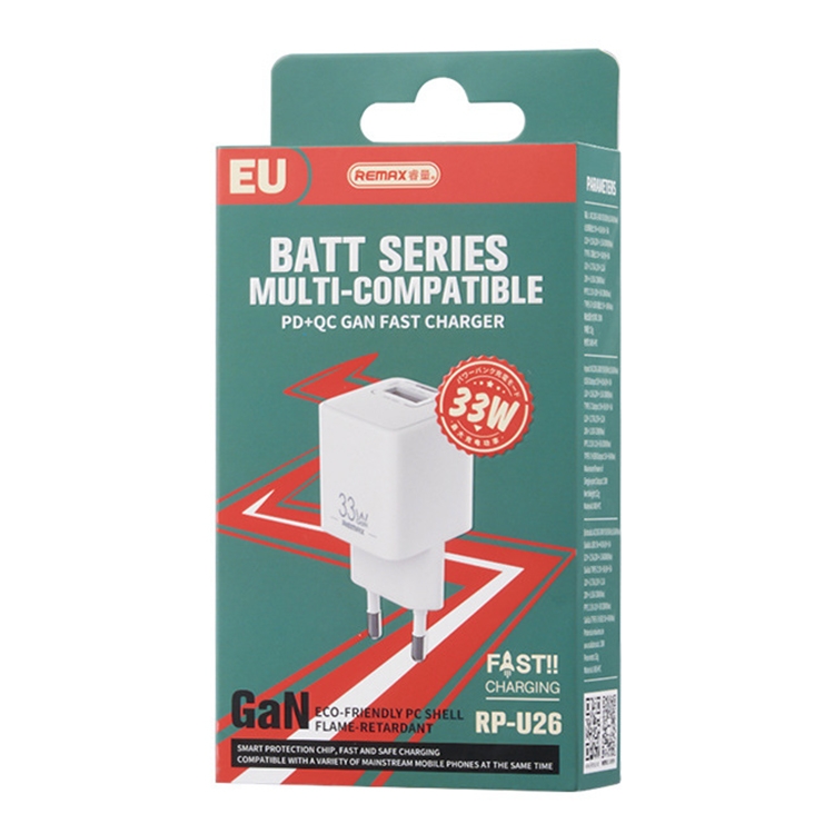 Cargador rápido Remax RP-U26 33 W USB + USB-C Tipo-C GaN (Blanco)