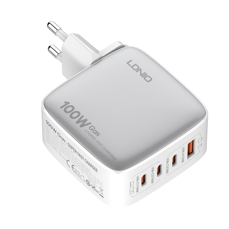 Cargador USB + 3 USB-C Gan 100 W Ldnio Q408 con Cable USB-C (Blanco)