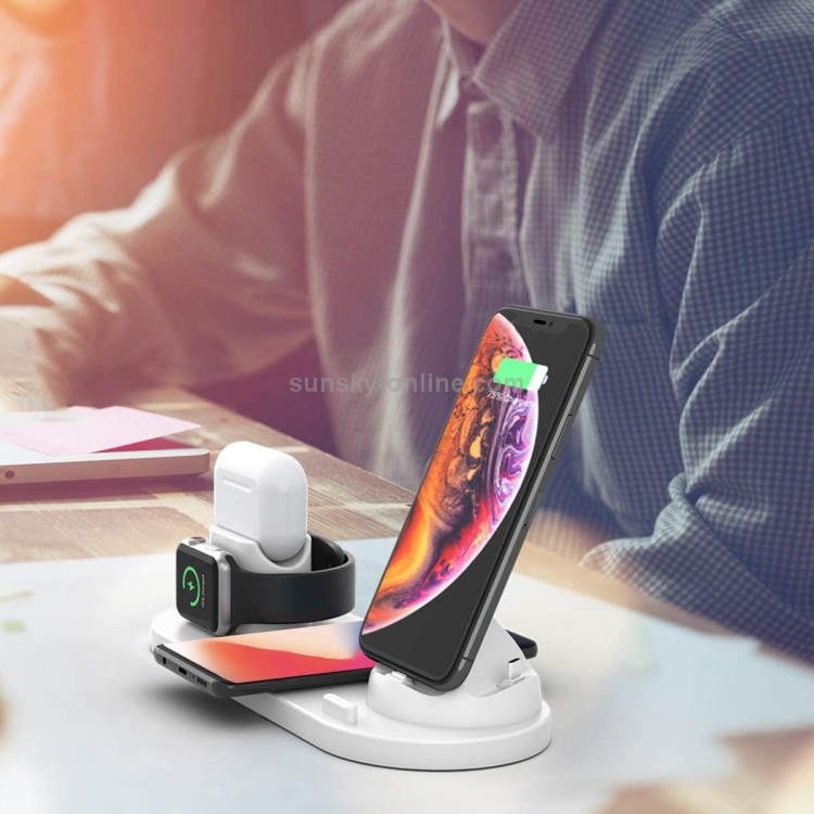 Cargador inalámbrico 6 en 1 Hq-Ud15 para iPhone Apple Watch AirPods y Android (Blanco)