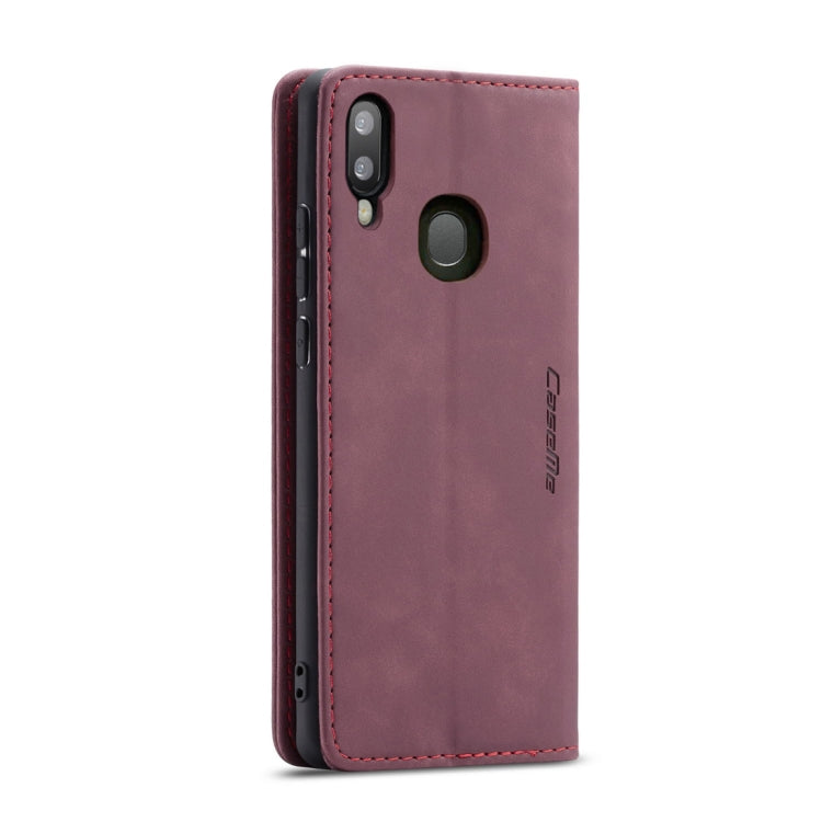 Estuche multifuncional Caseme-013 Cuero abatible horizontal Retro Esmerilado para Galaxy A20 / A30 con ranura para tarjeta soporte y billetera (Rojo Vino)