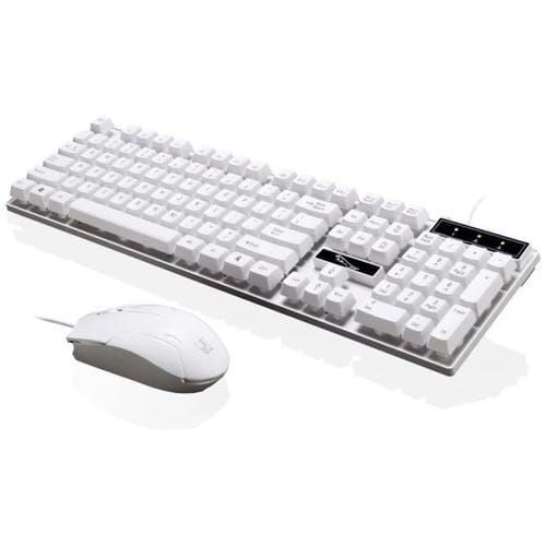 - 1x Teclado USB Chasing Leopard Q17 104 Teclas Suspensión Juegos Oficina + Mouse Simétrico con Cable (Blanco)