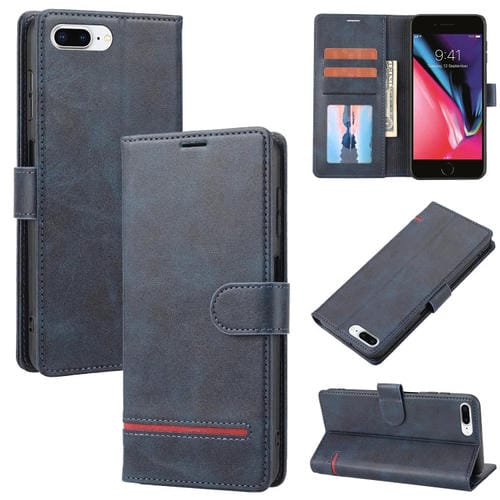 Funda tipo Cartera Classic Flip de Cuero para iPhone 7 Plus y 8 Plus (Azul)