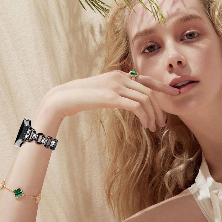 Correa de acero inoxidable con cabeza de metal y diamante ovalado para Samsung Galaxy Watch 7 de 40 mm/44 mm (negra)
