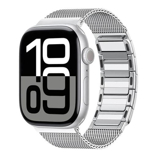 Correa de acero inoxidable con tejido magnético en forma de I para Apple Watch de 46 mm, 49 mm, 45 mm y 44 mm (plateada)