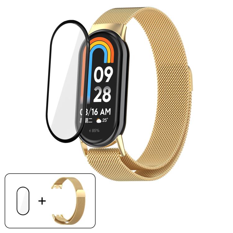 Correa de acero inoxidable milanesa con película curva 3D para Xiaomi Smart Band 9/9 NFC (dorada)