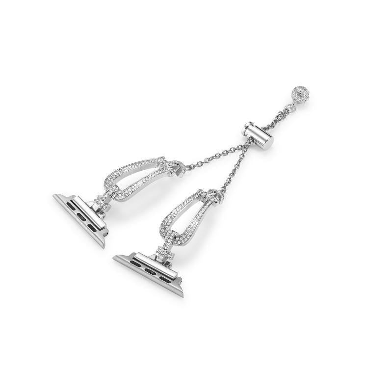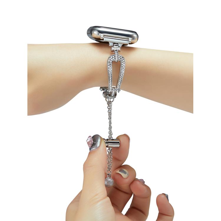 Correa de aleación de zinc con diamantes en forma de U para Apple Watch de 46 mm, 49 mm, 45 mm y 44 mm (plateada)