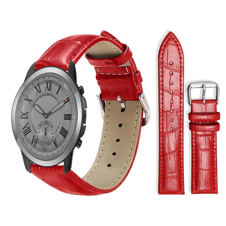 Correa de cuero con hebilla de pasador y textura de bambú de 24 mm para reloj híbrido Fossil Q Machine xDfind (rojo)