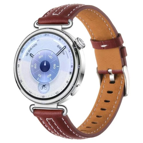 Correa de cuero con hebilla plateada para Huawei Watch GT 6 de 41 mm (rojo vino)
