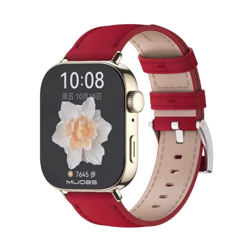 Correa de Cuero Genuino Mijobs para Huawei Watch Fit3 (Oro Claro Rojo)
