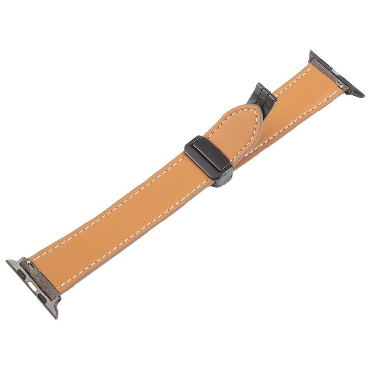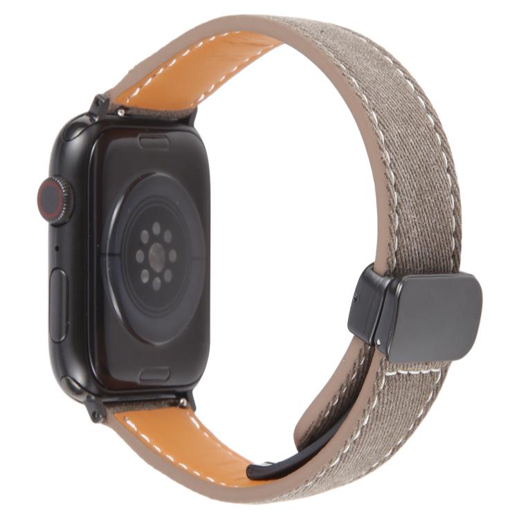 Correa de cuero vaquero con hebilla magnética plegable para Apple Watch de 46 mm, 49 mm, 45 mm y 44 mm (marrón claro)