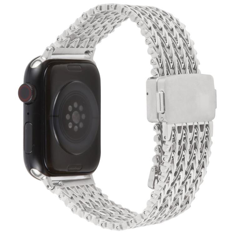 Correa de malla de acero con cierre magnético para Apple Watch de 42 mm, 41 mm, 40 mm y 38 mm (plateada)