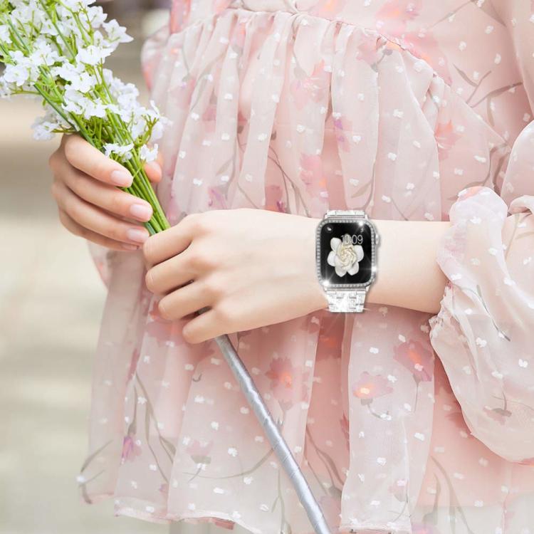 Correa de metal con diamantes brillantes y estuche para Apple Watch Series 45 mm xDfind (plateada)