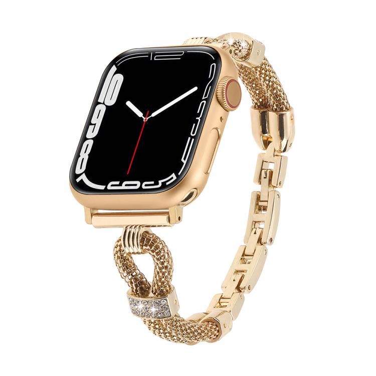Correa de metal con diamantes y cadena de cobre para Apple Watch de 42 mm, 41 mm, 40 mm y 38 mm (dorada)