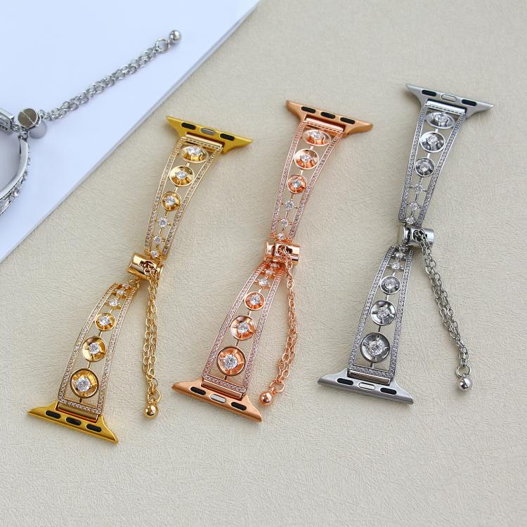 Correa de metal de circonio platino con estrella para Apple Watch de 46 mm, 49 mm, 45 mm y 44 mm (oro rosa)