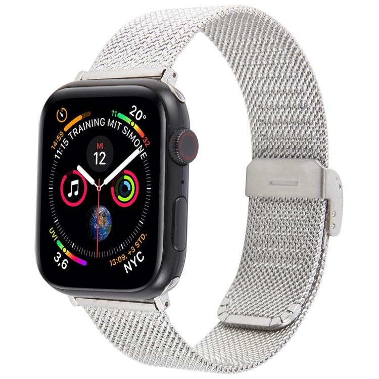 Correa de metal milanés grueso con hebilla integrada en relieve para Apple Watch de 42 mm, 41 mm, 40 mm y 38 mm (plateada)