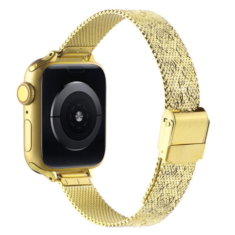 Correa de metal milanesa con relieve para Apple Watch de 46 mm, 49 mm, 45 mm y 44 mm (dorado rosa)