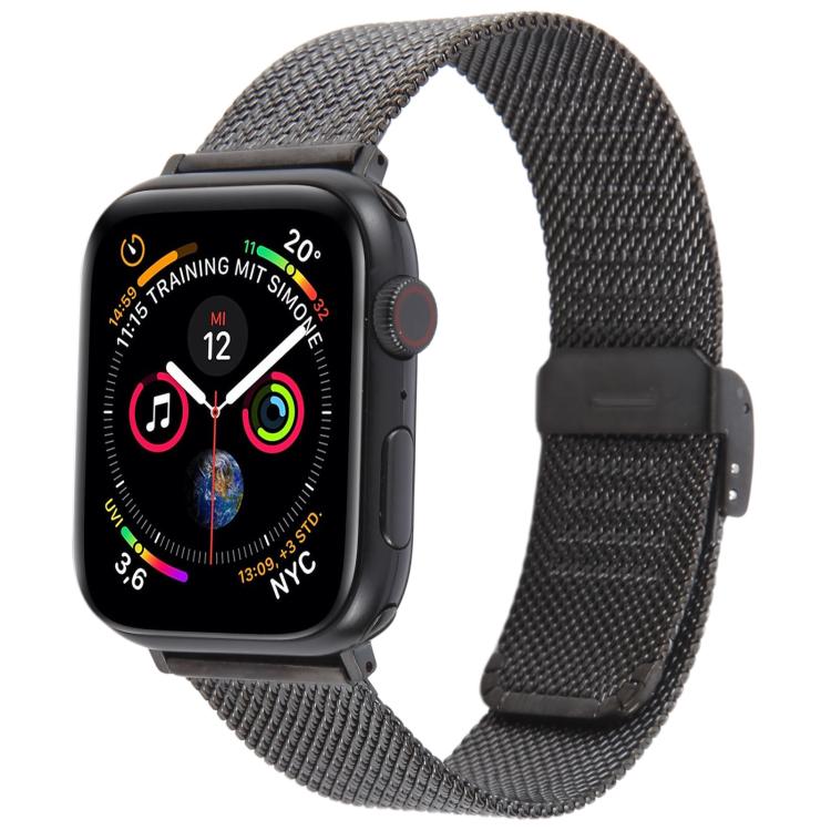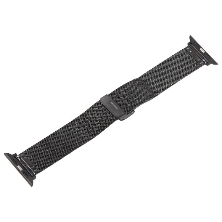 Correa de metal milanesa gruesa con relieve y hebilla integrada para Apple Watch de 46 mm, 49 mm, 45 mm y 44 mm (negra)
