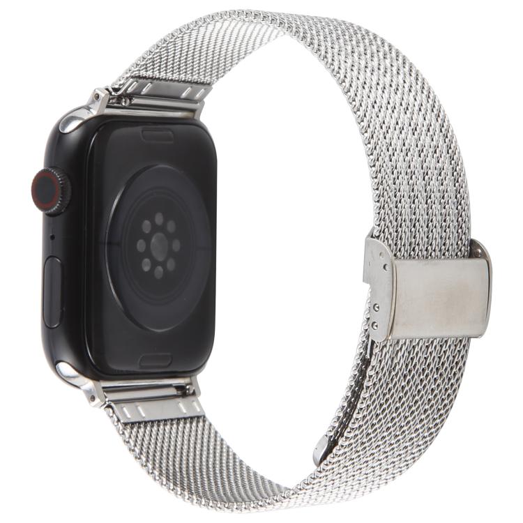 Correa de metal milanesa gruesa con relieve y hebilla integrada para Apple Watch de 46 mm, 49 mm, 45 mm y 44 mm (plateada)