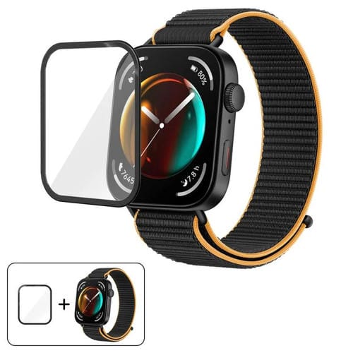 Correa de nailon con cierre de velcro y película curva 3D para Huawei Watch Fit 3 (negro y amarillo)