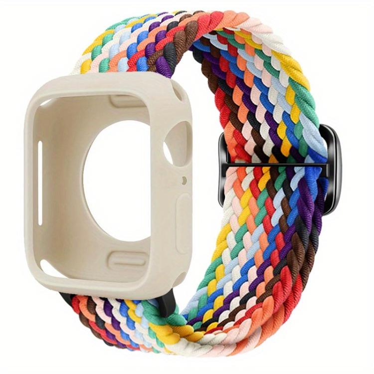 Correa de nailon con hebilla de escalera y funda de silicona para Apple Watch de 40 mm/41 mm (arcoíris)