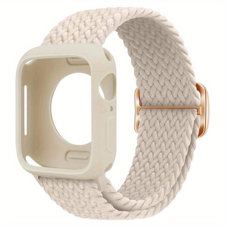 Correa de nailon con hebilla de escalera y funda de silicona para Apple Watch de 44 mm/45 mm (Starlight)