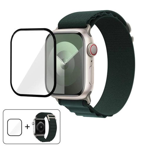 Correa de nailon con hebilla y película curva 3D para Apple Watch Series 10 de 46 mm (verde bosque)
