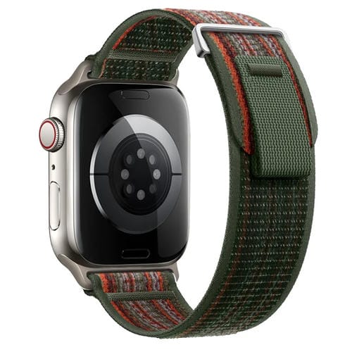 Correa de Nailon Doble Sección Apple Watch Series 9 45mm (Naranja y Verde Abeto Oscuro)