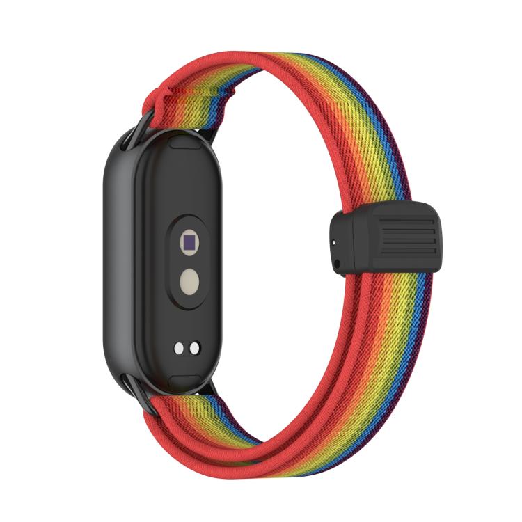 Correa de nailon elástica con hebilla magnética de plástico y cabeza de metal para Xiaomi Smart Band 10/9/8 (arcoíris)