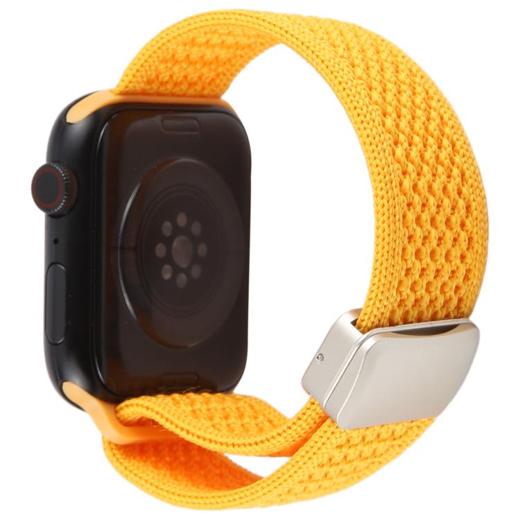 Correa de nailon transpirable con hebilla magnética para Apple Watch de 42 mm, 41 mm, 40 mm y 38 mm (amarillo-naranja)