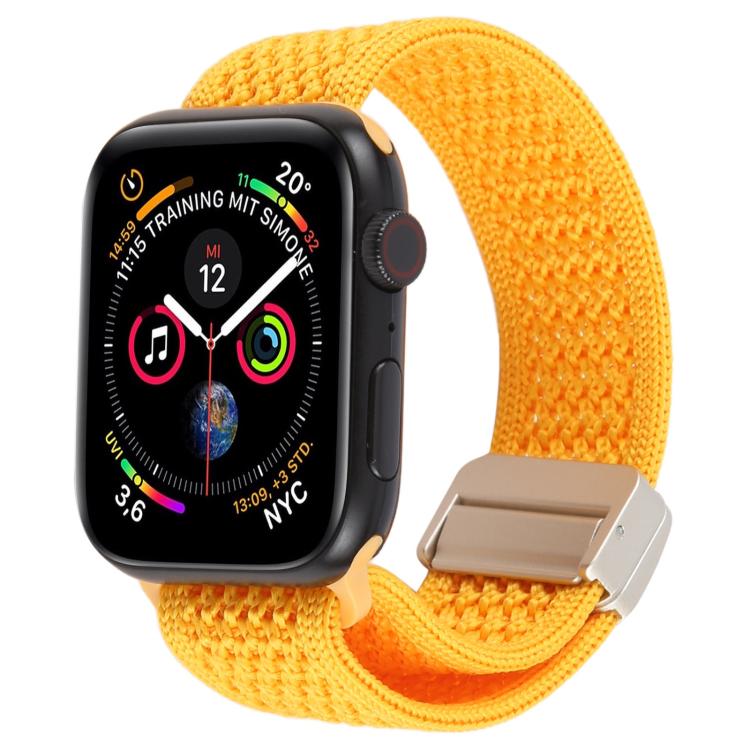 Correa de nailon transpirable con hebilla magnética para Apple Watch de 46 mm, 49 mm, 45 mm y 44 mm (amarillo-naranja)