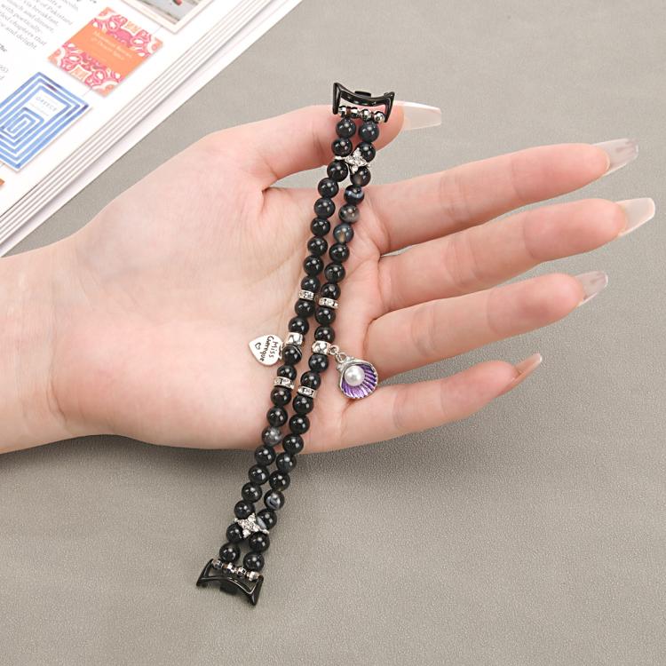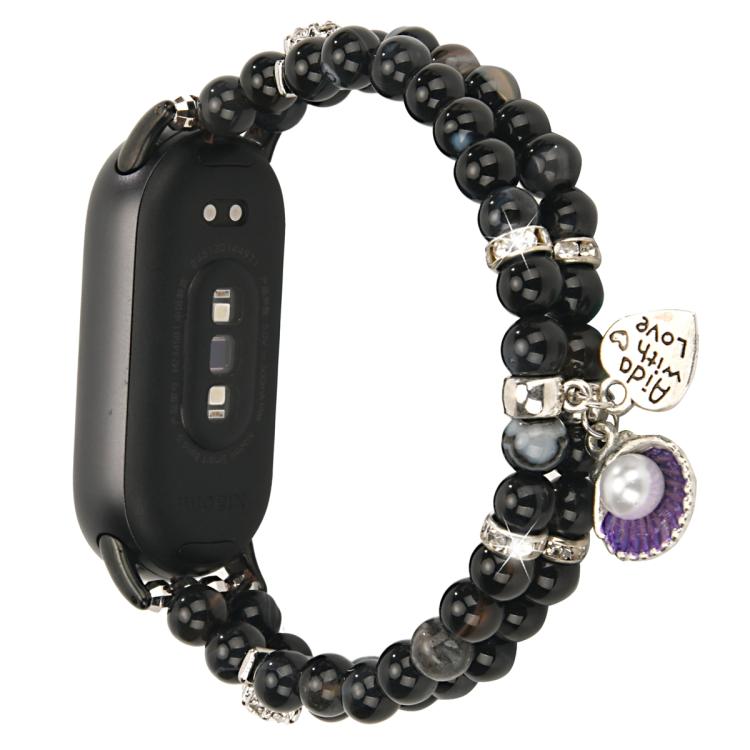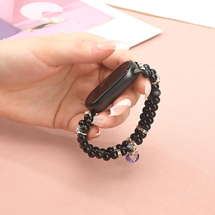 Correa de reloj con cadena de cuentas de doble fila para Xiaomi Smart Band 10/9/8 (negra)