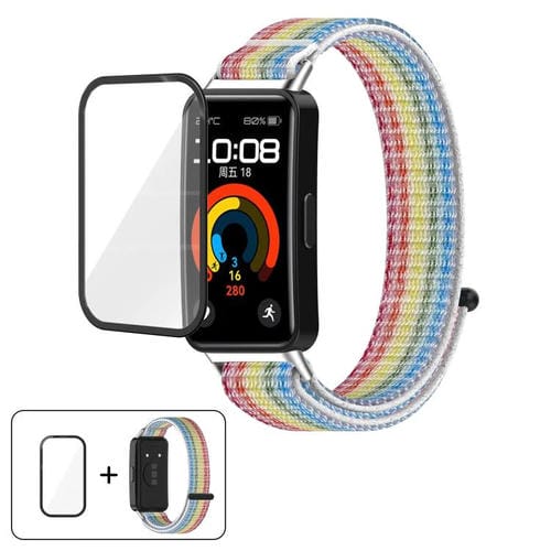 Correa de reloj con cierre de velcro de nailon y película curva 3D para Huawei Band 10/10 NFC (arcoíris)