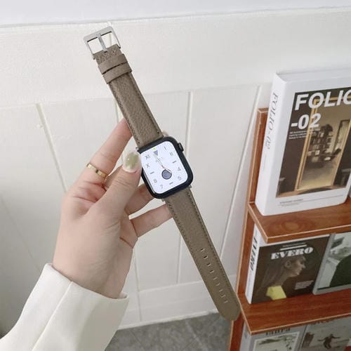 Correa de Reloj de Cuero Lychee con Hilo para Apple Watch Series 8, 7, SE, 6, 5, 4, 3, 2, 1 (Café)
