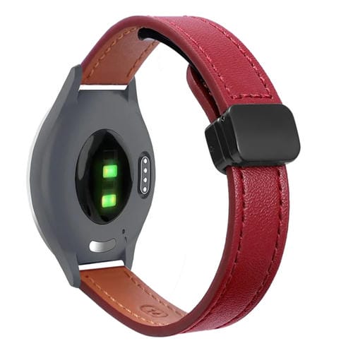 Correa de Reloj de Cuero Microfibra con Hebilla Magnética 18mm para Garmin Active S (Rojo Vino)