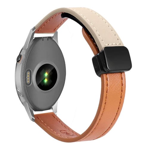 Correa de Reloj de Cuero de Microfibra con Hebilla Magnética Fina de 18mm para Garmin Forerunner 255S (Naranja Aima + Albaricoque Crema)