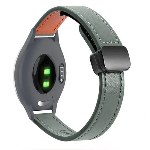 Correa de Reloj Cuero Microfibra con Hebilla Magnética 18mm para Garmin Vivoactive 4S (Verde Aguacate)