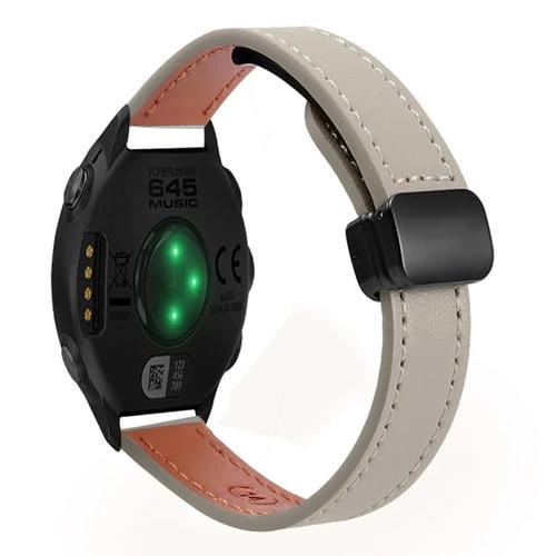 Correa de Reloj Cuero Microfibra 20mm con Hebilla Magnética para Garmin Forerunner 645 Music (Gris)