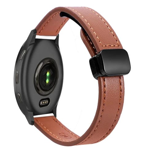 Correa de Reloj Cuero Microfibra 20mm con Hebilla Magnética para Garmin Venu 2 Plus (Marrón Moca)