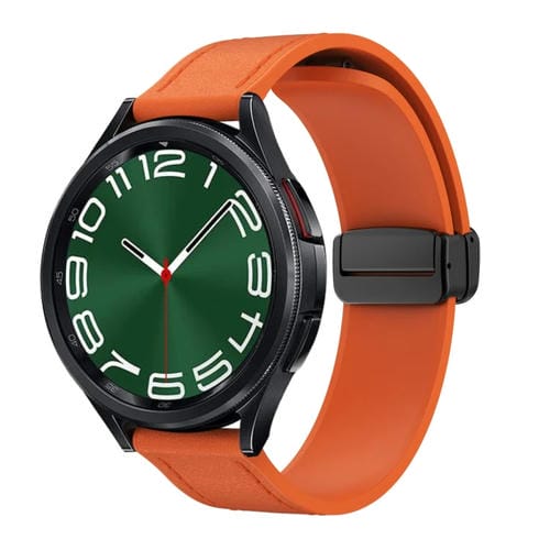 Correa de Reloj Cuero Silicona 20mm Hebilla Negra Magnética (Naranja)