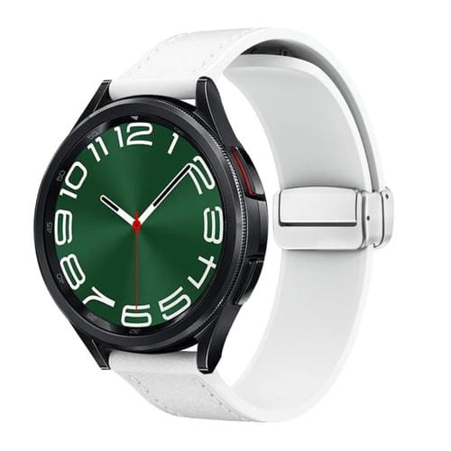 Correa de Reloj de Cuero y Silicona con Hebilla Magnética Plateada 20mm (Blanco)