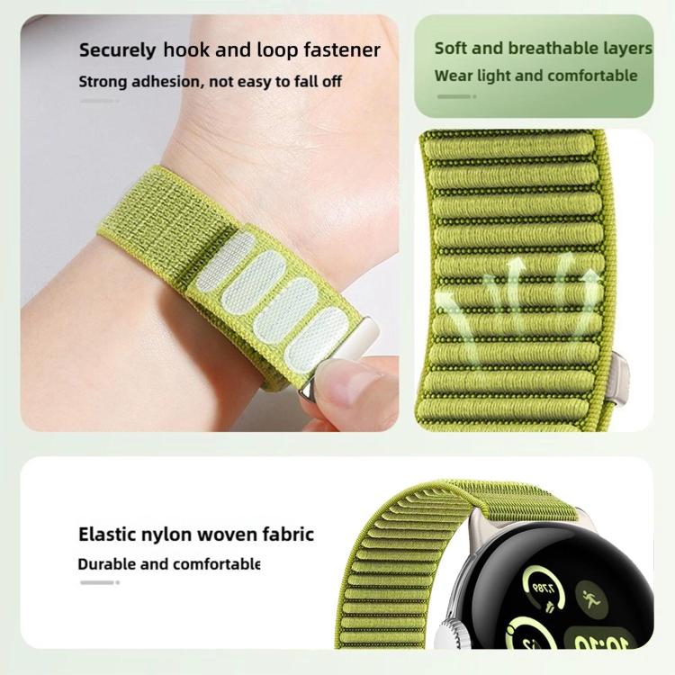 Correa de reloj de nailon tejido de 45 mm con cierre de velcro e interfaz metálica para Google Pixel Watch 4 / Watch 3 (rosa)