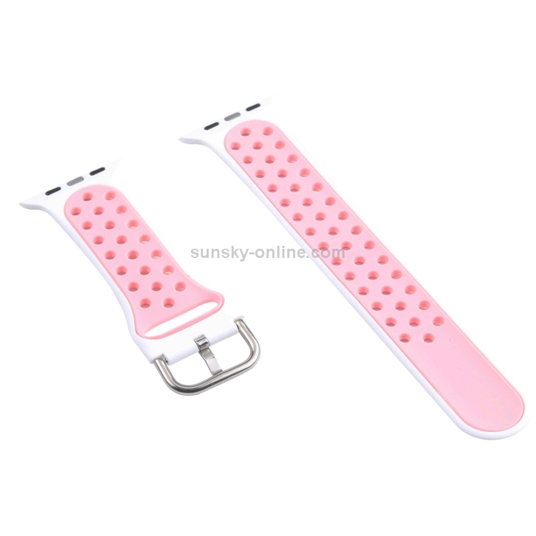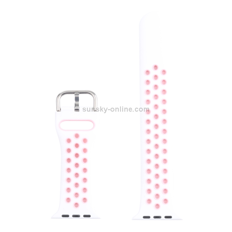 Correa de Reloj silicona con hebilla metal para Apple Watch Series 8 y 7 41mm / SE 2 y 6 y 5 y 4 40mm / 3 y 2 y 1 38mm (Blanco + Rosa)