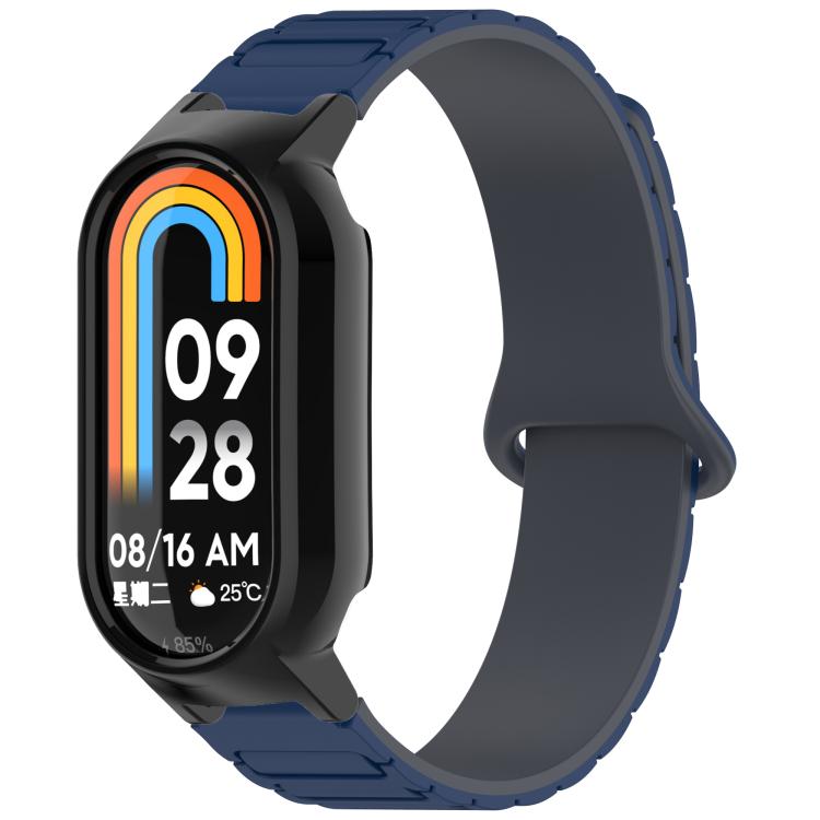 Correa de reloj de silicona magnética en forma de I para Xiaomi Smart Band 9/9 NFC PC Watch Frame (azul + negro)