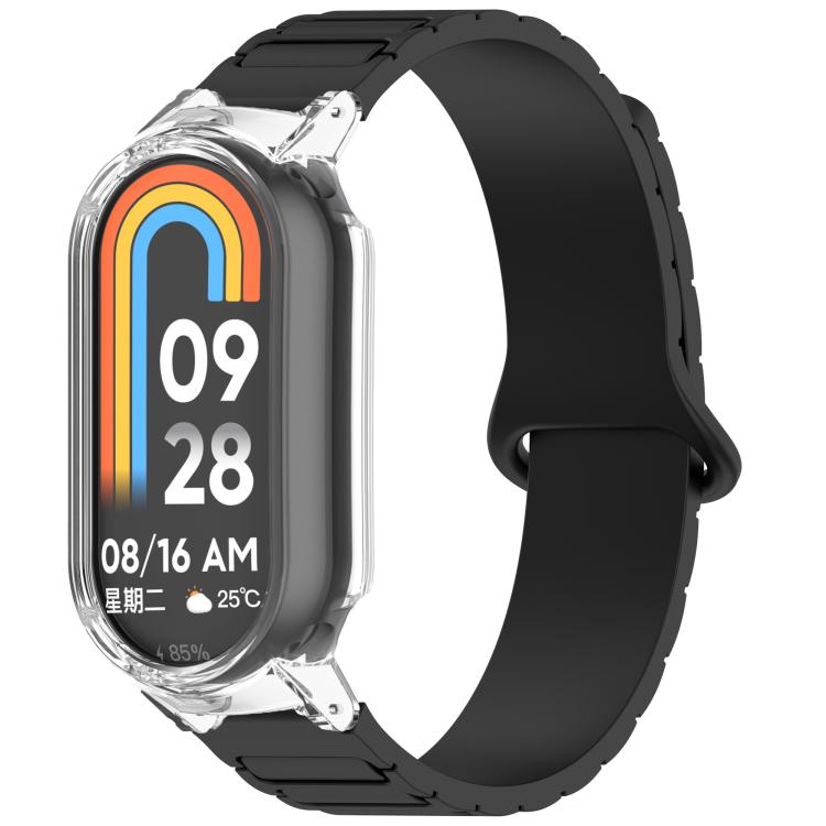 Correa de reloj de silicona magnética en forma de I para Xiaomi Smart Band 9/9 NFC PC Watch Frame (negra y transparente)